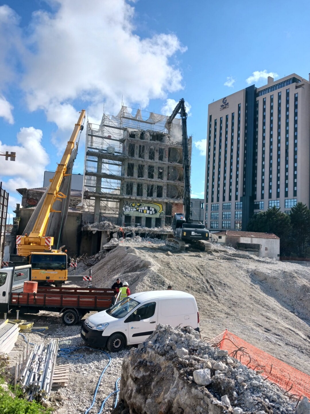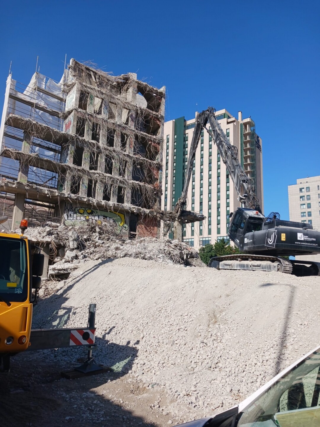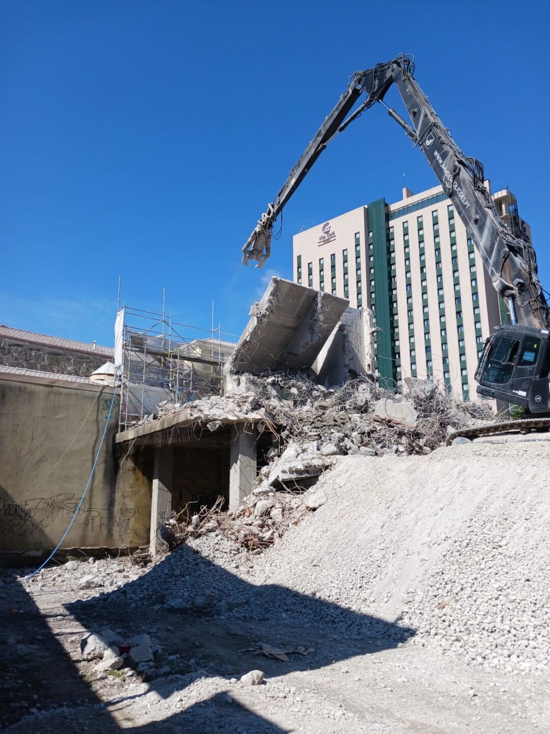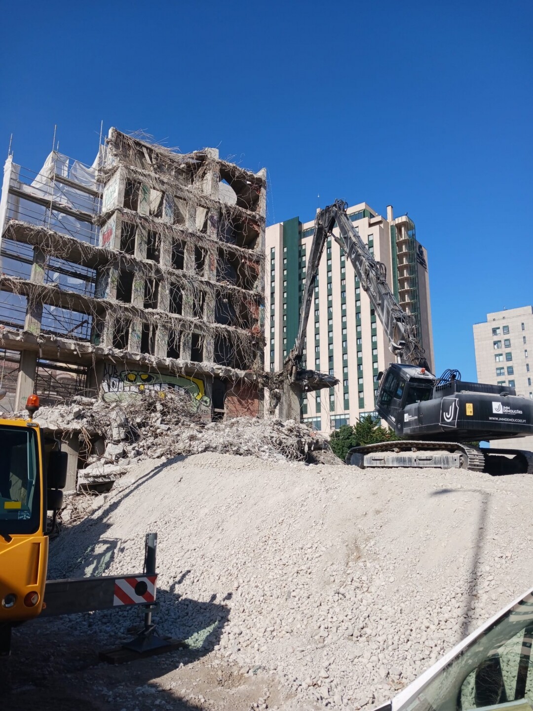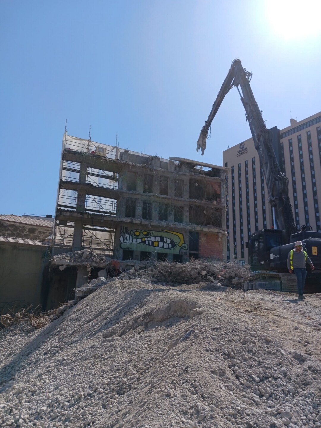 Participação como subempreiteiro na execução de trabalhos de demolição integral de edifício devoluto existente.