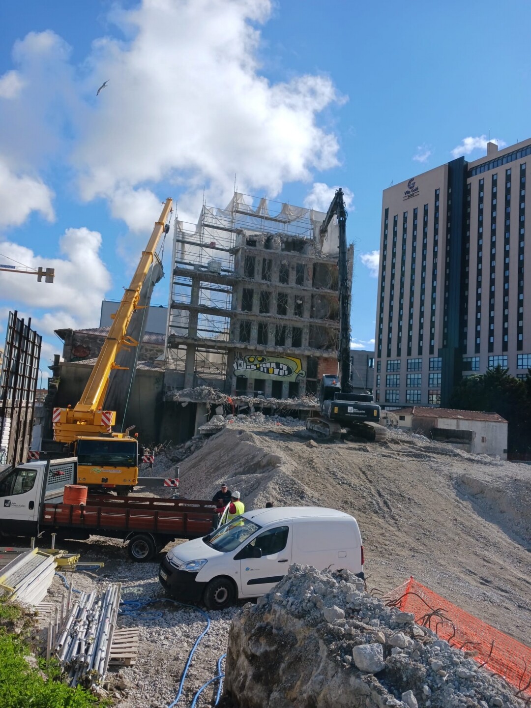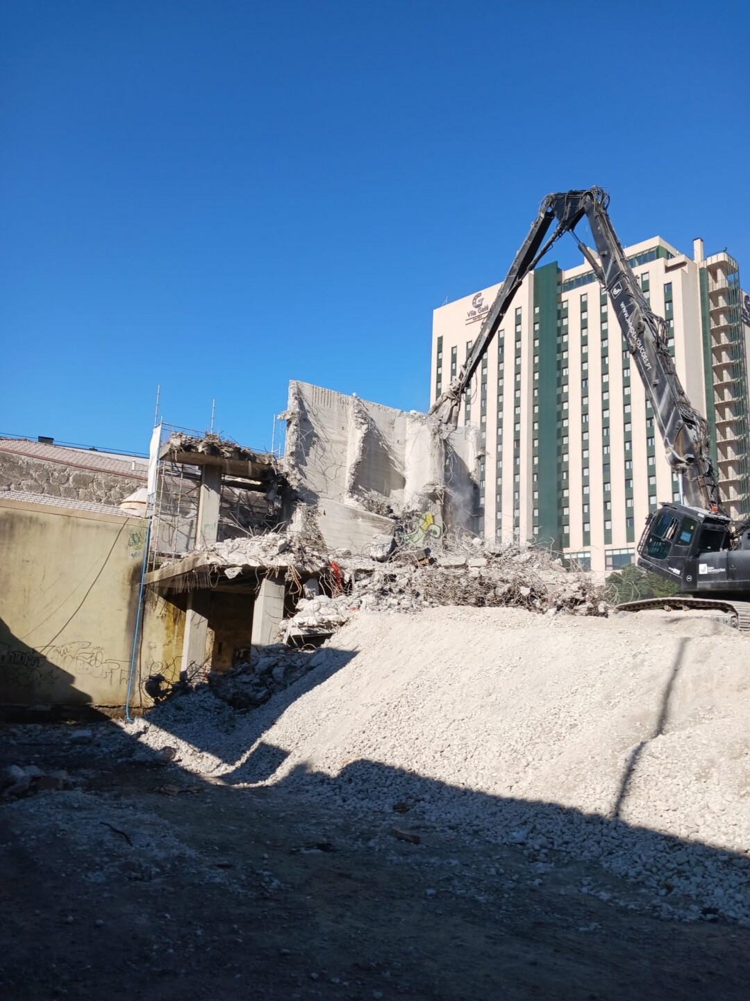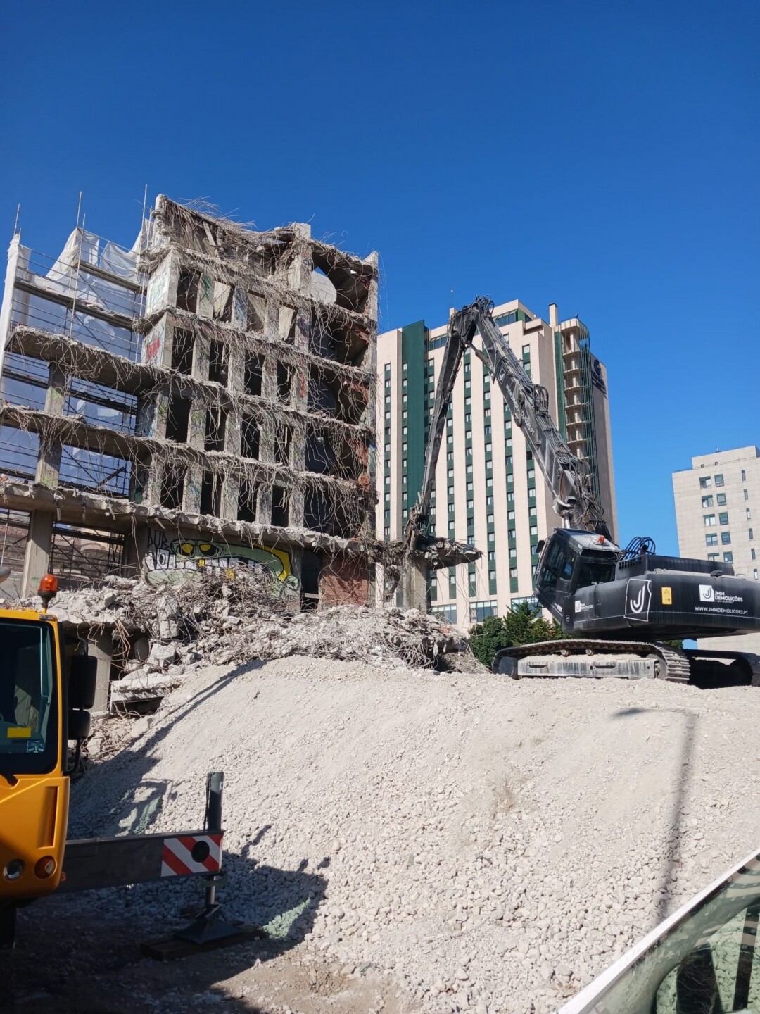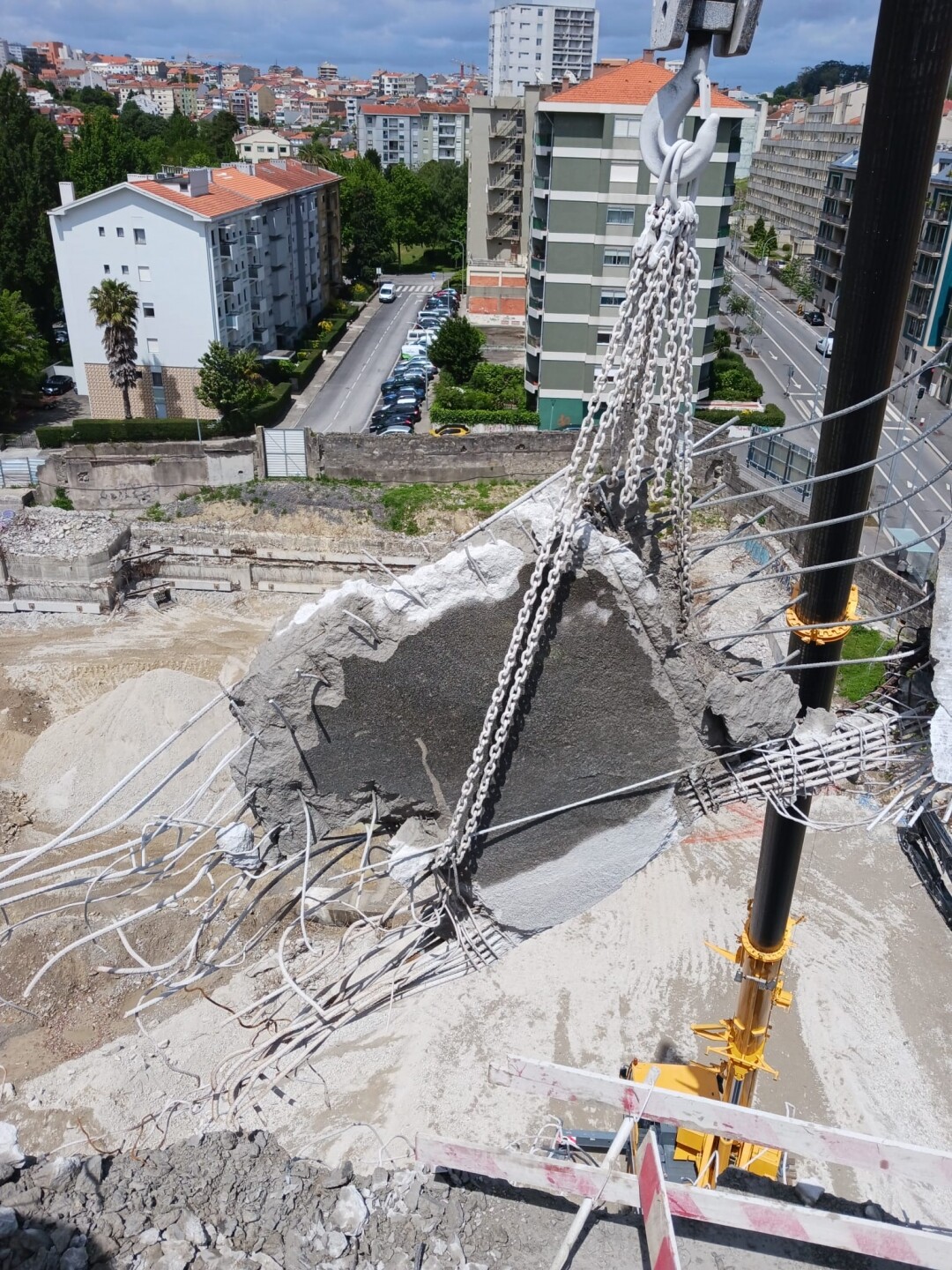 A nossa intervenção consistiu no apoio técnico e operacional às operações de demolição, incluindo desmontagens preparatórias, demolição mecânica de elementos estruturais e não estruturais, triagem e encaminhamento de resíduos para destino final adequado.